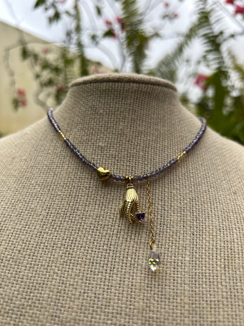 • Materials: faceted pink/ruby glass or crystal beads, gold‑tone spacer & dangle beads, gold star pendant with clear crystal (gold‑plated hardware stainless steel )